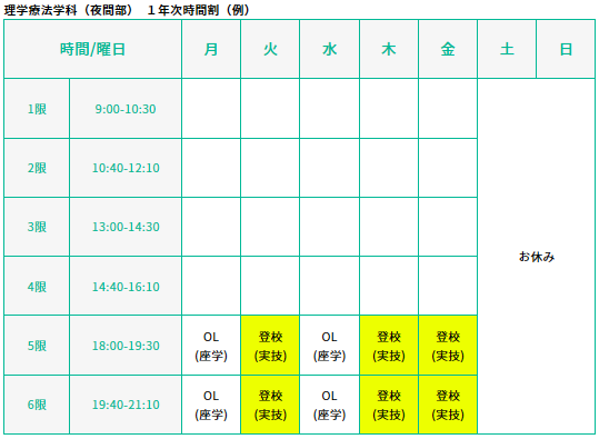• 登校(実技):18:00〜21:10