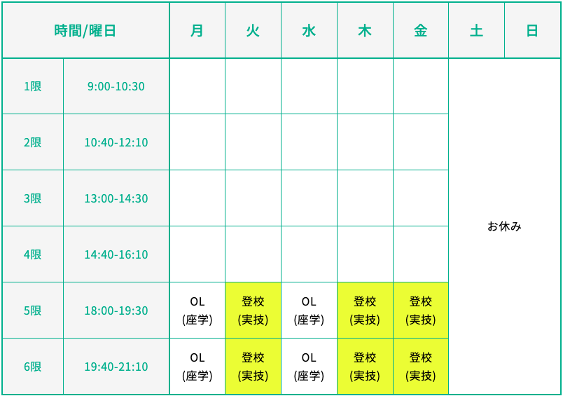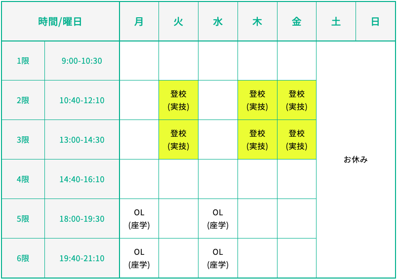 ※特殊な実技や演習授業は一部夜間登校になることがあります。